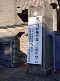 有機合成シンポジウムは、有機合成化学に関する最新の研究成果が発表される、長い歴史を持つシンポジウムです。年に2回、春と秋に開催されており、今回の第127回シンポジウムは、2025年11月6日(木)・7日(金)の2日間、例年通り早稲田大学国際会議場にて開催されました。本シンポジウムでは、過去10年で最多の248名の参加者が集い、40件の口頭発表と26件のポスター発表に加え、2024年度企業冠賞と有機合成化学協会賞(技術的なもの)の受賞講演が2件行われました。