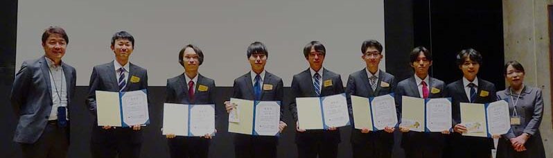 本シンポジウムでは、優れた発表を行った学生会員を対象に、優秀発表賞を授与しています。企業会員8名、アカデミア29名による厳正な審査が行われた結果、今年は1名の最優秀発表賞と6名の優秀発表賞が選出されました。表彰式では実行副委員長である犀川先生(慶應大)より受賞者の発表、また山口先生より賞状と副賞が授与されました。